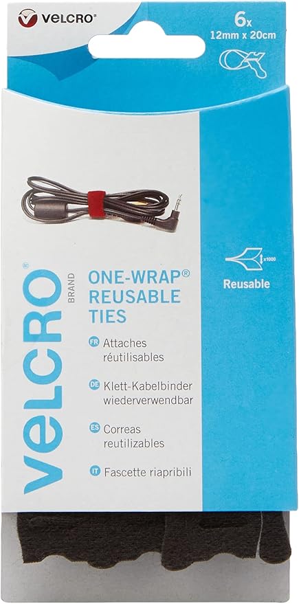 – 6 ayarlanabilir Ties 12 mm x 20 cm Siyah – 6 Velcro kablo bağı için paketleme Haft ve Flauschteil (G x U) 12 mm x 20 cm Siyah