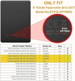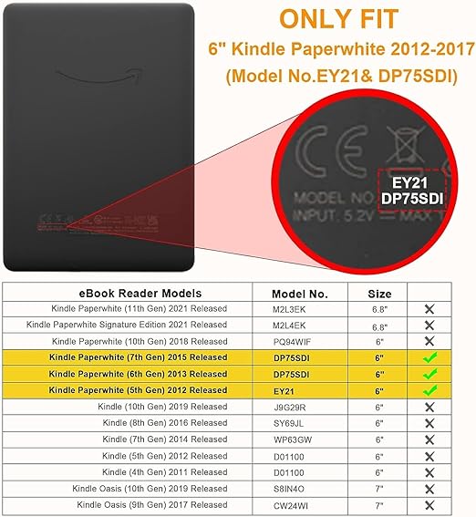 【Not】 İnce katlanır kılıf yalnızca Kindle Paperwhite 6 inç 5./6./7. Nesil, 2012/2013/2015 Sürümü için, Lütfen satın almadan önce e-okuyucunuzun arkasındaki model numarasının doğru olduğunu onaylayın. Kindle veya diğer Kindle Oasis