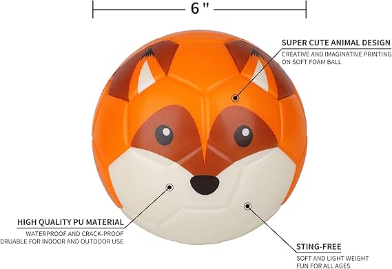 6″ Mini Futbol, Sevimli Hayvan Tasarımı, Çocuklar için Yumuşak Köpük Top, Yumuşak ve Zıpır, Çocuklar için Mükemmel Beden, Tilki