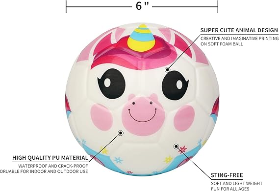 6 “Pro Mini Futbol Çocuklar için Orman Hayvan Tarzı Köpük Topu Yumuşak ve Kabarık Çocuklar için Mükemmel Boyut (Unicorn)