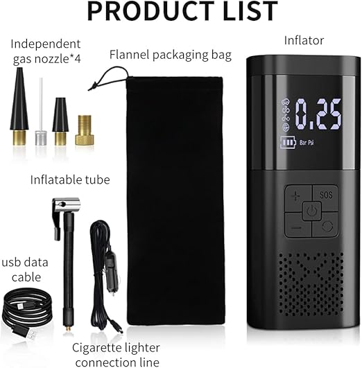 4. Çoklu kullanım: Bu pil hava pompası 4 farklı ek nozul ile donatılmıştır. Arabalar, motosikletler, bisikletler, toplar, şişme minderler vb. için uygundur. Ürün hem işlevsellik hem de estetiğe sahiptir.