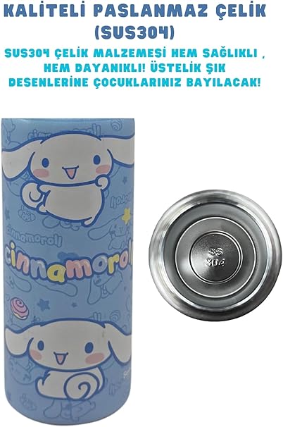 600ml Cinnamoroll Temalı Lisanslı Pipetli Kilitlenebilir Kapak Paslanmaz Çelik Termos Matara
