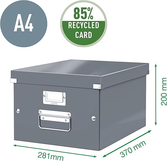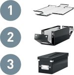 Leitz Click ve Store ürün yelpazesinin diğer ürünleriyle kombine edilebilir, metal takviyeli köşeler sayesinde yüksek kalite, lamine yüzey sayesinde kolay temizlenir