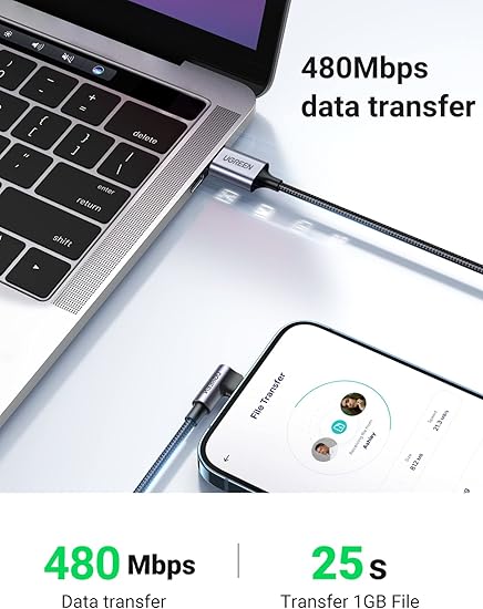 60521 Ugreen Örgülü 90° Lightning iPhone Şarj ve Data Kablosu, Siyah, 1 Metre