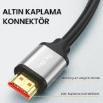 HDR desteği, renklerin daha doğal ve parlak görünmesini sağladığı için özellikle modern televizyonlarda ve monitörlerde daha gerçekçi görüntüler elde edersiniz. Altın kaplama konnektörleri, alüminyum alaşım konnektör kaplamaları, PVC malzemeden üretilen kablo kaplaması, alüminyum iç kaplaması ve kalınlaştırılmış oksijensiz bakır iç kablosu ile inanılmaz bir dayanıklılığa ve korumaya sahiptir böylece bükülme, kırılma, parazit gibi sorunları tamamen ortadan kaldırır.