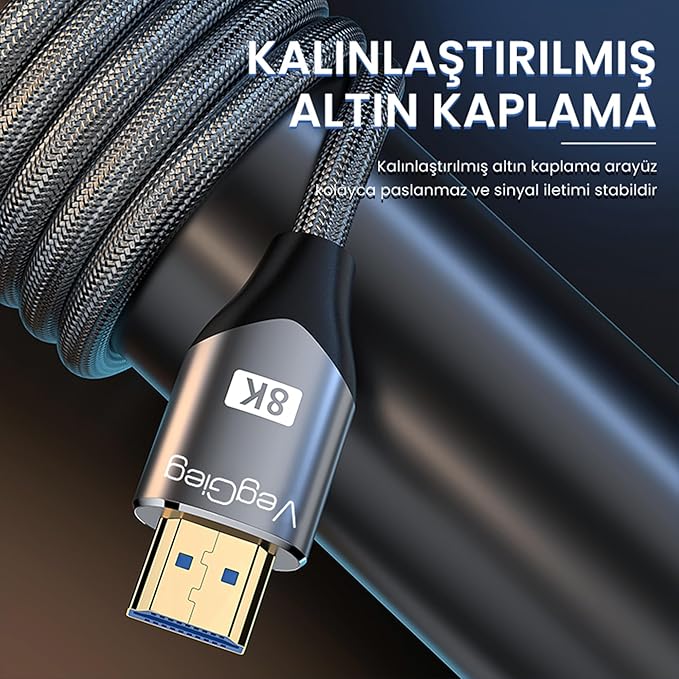 60Hz 4K 120Hz 48 Gbps HDR ARC HDCP Örgülü HDMI 2.1 Kablo 3 Metre