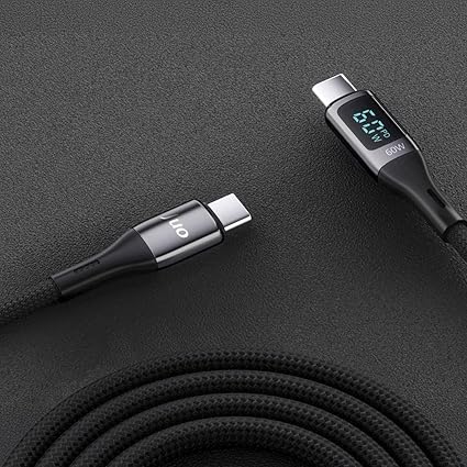 60W Dijital Led Ekranlı Örgülü USB Type-C to Type-C Hızlı Şarj ve Data Kablosu 2 Metre