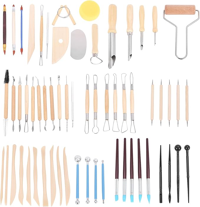 Oyma, modelleme, kesme, kazıma, yontulma, fırçalama, taşlama ve daha fazlası için komple bir kil alet setidir.
