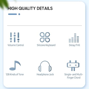 * Kalınlaştırılmış cilt dostu silikon tuşlar, dayanıklı, yumuşak ve dayanıklıdır, ra gerçek piyano dokunuşu ve net ses kalitesi sunar.