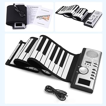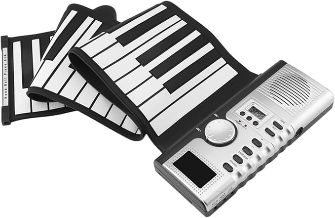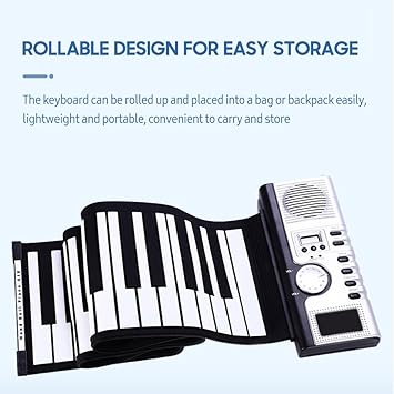 61 Tuşlu Roll Up Piyano Klavyesi Taşınabil Yumuşak Silikon Elektronik Piyano Dahili Hoparlör Ekranlı MIDI Fonksiyonu şkinler ve Yeni Başlayanlar İçin Siyah ve Beyaz