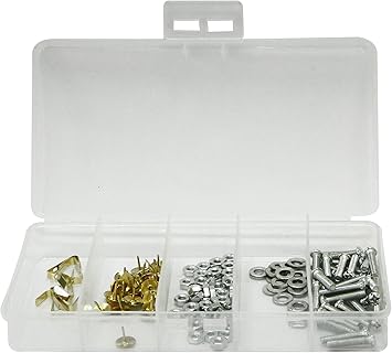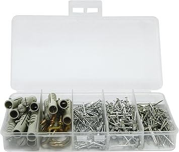 Çeşitli ebat ve miktarlarda kanca ve askı, pim, çivi, vida, somun ve cıvata ve dübel içerir