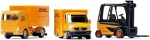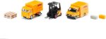 Küçük ve büyük DHL ve lojistik hayranları için araçlar ve aksesuarlar içeren detaylı oyuncak seti