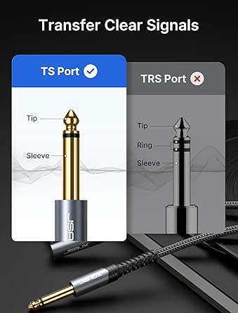 【TS ve TRS】JSAUX enstrüman kablosu simetrik (TS) ses kablosudur. Bağlantı 6,35 mm TS. Gitarınızı, basınızı ve hatta klavyenizi bağlamak istiyorsanız, simetrik (TRS) ses kablosuna ihtiyaç duymazsınız ve simetrik (TRS) ses kablosu gerekmez. TRS kabloları bu durumlarda düşük kaliteli sonuçlar verir ve bazen bağlı cihazların tasarımına ve kablolarına bağlı olarak hiç çalışmaz.