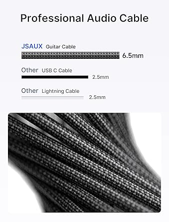 【Profesyonel enstrüman kablosu】 JSAUX enstrüman kablosu piyasadaki çoğu ses kablosundan daha kalındır. Enstrüman kablolarımız çok kalındır, çünkü arızalara karşı çok sayıda koruyucu tasarıma sahiptir. Enstrüman kablo fişimizi gitarda kullanırsanız, statik şarj olmaz ve çıtırtı olmaz. Güvenle kullanabilirsiniz.