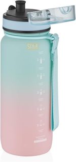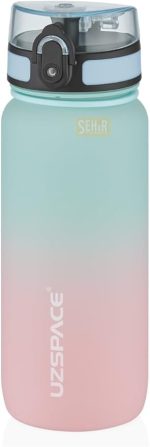 650ml Çift Renkli Sızdırmaz BPA İçermez Kilitlenebilir Kapaklı Motivasyonel Tritan Su Matarası (Su Yeşili-Pembe)