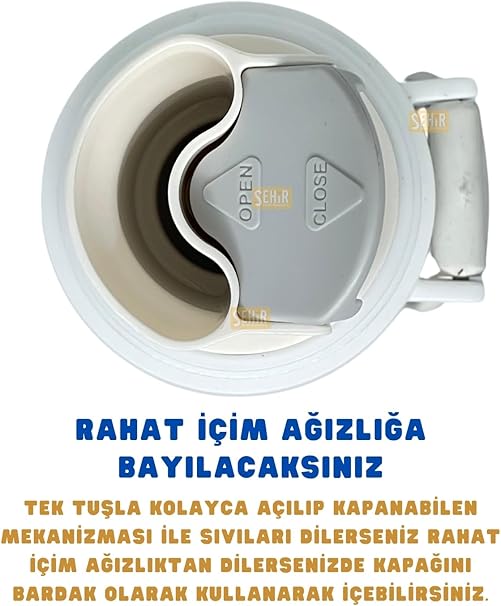 650ml Lisanslı Çift Katlı Paslanmaz Çelik Termos 8 Saat Sıcak Soğuk Hediye Kutulu Beyaz