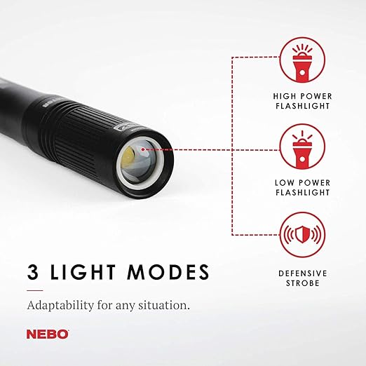 Eloksallanmış uçak sınıfı alüminyum Darbelere dayanıklı, su geçirmez (IP67) 3x ayarlanabilir yakınlaştırma Çıkarılabilir çelik kemer / cep klipsi