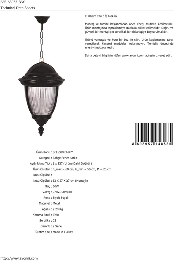 “68053 Bahçe Fener Sarkıt, 60 w, Siyah” için yorum yapan ilk kişi siz olun Yanıtı iptal et