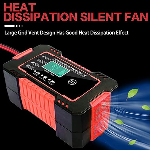 6A 12V Araç Aküsü Şarj Cihazı – Tam Otomatik Akıllı Koruma, LCD Ekranlı – Otomobil, Motosiklet, Çim Biçme Makinesi ve Tekne İçin Çoklu Koruma