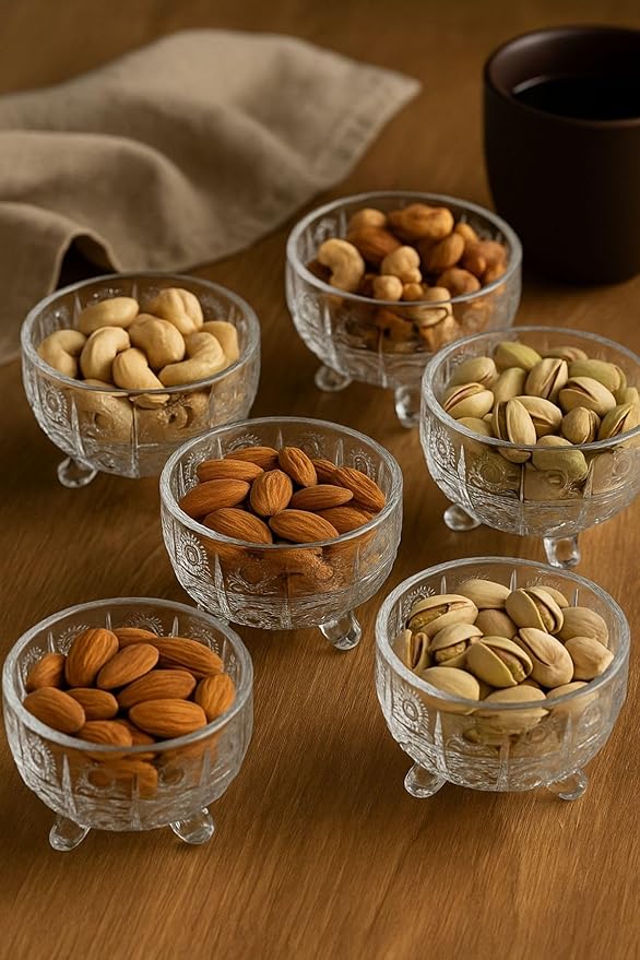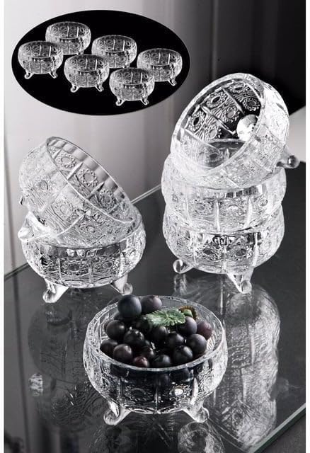 6’lı Ayaklı Kristal Cam Lüks Çerezlik/Lokumluk/Reçellik (8X8X5 Cm)