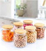 6’lı Cam Saklama Kabı Vakumlu 800ml. Bambu Kapaklı