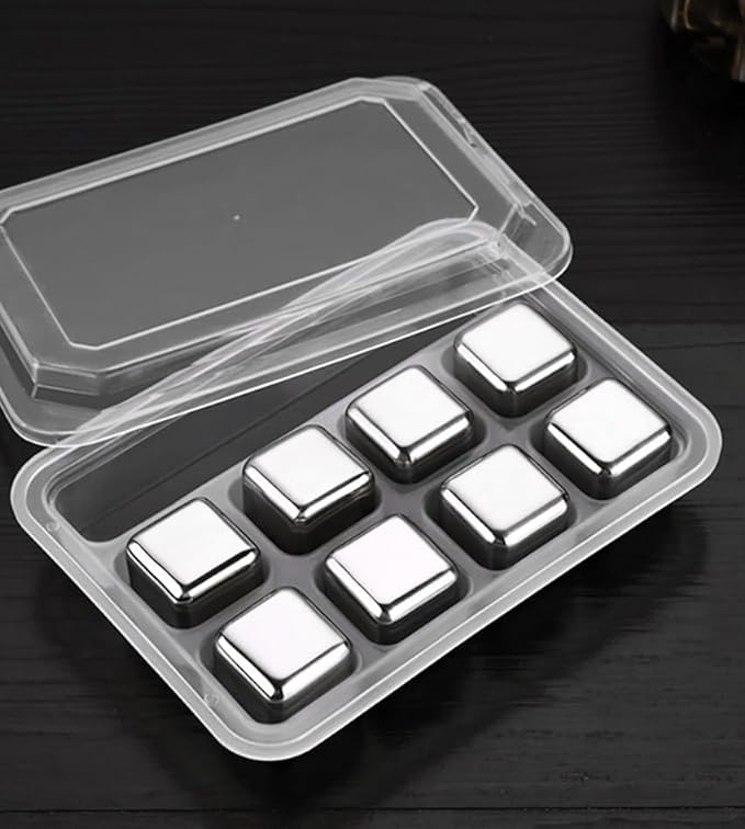 – Çelik Metal Gold Kaplama Viski Taşı Soğutma Buz Küpü Çelik Buz Küpleri Metal Soğutma Küpleri Hediyelik Çelik Viski Soğutma Taşı Seti Ürün viski için kullanımı daha yaygın olduğu için viski soğutma küpleri olarak geçse de her türlü soğuk içecek için kullanıma uygundur.