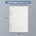6’lı Paket A5 Yedek Kağıt, 6 Delikli, Çizgili, 270 Yaprak/540 Sayfa, Halkalı Dosya Bölmeleri İçin, Doldurulabilir A5 Not Defteri