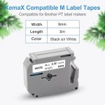 6x uyumlu M-K221S 9 mm 3/8 Brother yedek Brother M-K221S M-K221 MK221S MK 221S Brother P-Touch 60 bantlar 9 mm Brother PT-65 PT-90 PT-80 PT-55 PT-60 PT-85 PT-M95 için, beyaz üzerine siyah
