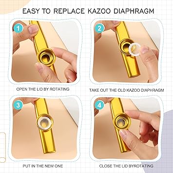 【Taşıması kolay】 7 metal kazoo kolay taşınır, çantaya koyabilir ve her zaman ve her yerde müzik dünyasının tadını çıkarabilirsiniz. Ayrıca Kazoo membranlarımız kolayca değiştirilebilir. Profesyonel bir membran veya hatta plastik folyo ile değiştirebilirsiniz.