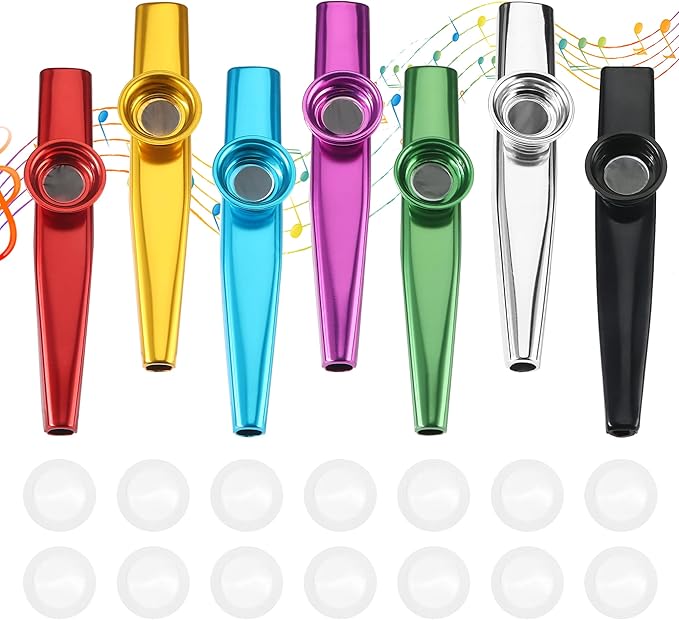 7 adet Kazoo enstrüman, metal, 14 değiştirilebilir membranlı Kazoos seti, burun flütü, çocuklar, yetişkinler ve müzisyenler için uygundur, Kazoo renkli, çocuklar ve parti hediyeleri için