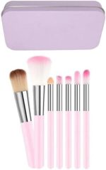 7 Adet Makyaj Fırça Seti Metal Kutuda Pembe