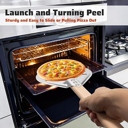 7 inç Pizza Kürek Kabuğu, Yapışmaz Pizza veya Pasta Sunucu, Pizza Tornalama Kabuğu, Sökülebilir Ahşap Saplı Pizzaları Profesyonel Gibi Pişirin