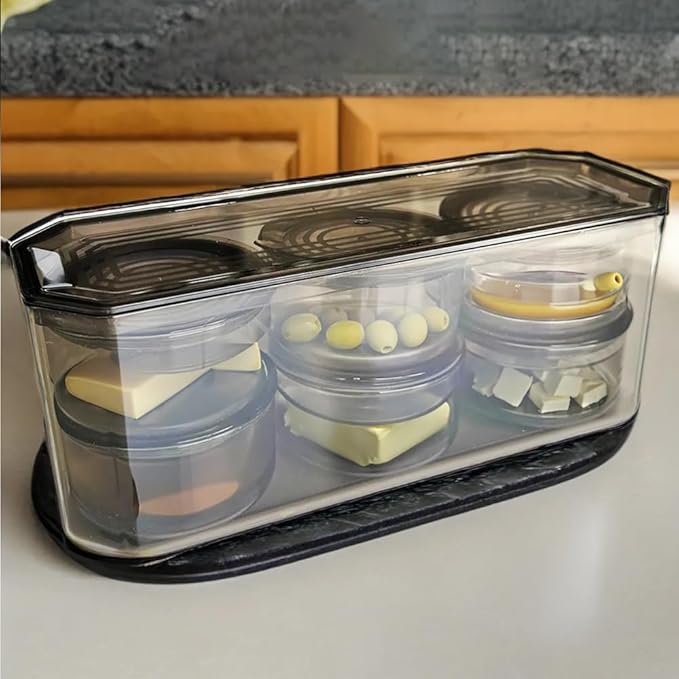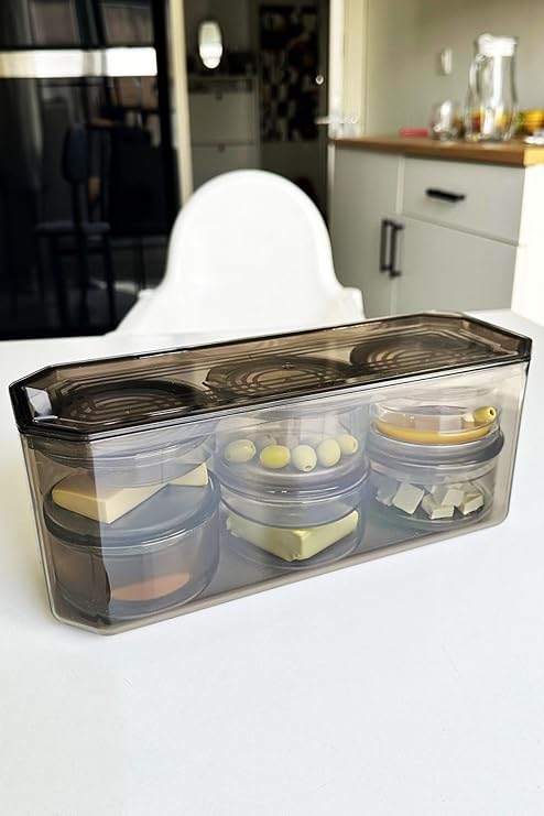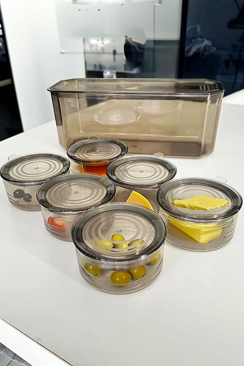 7 Parça Kristal Saklama Kutulu Vakum Kapaklı Kahvaltı Seti | 7’li Kahvaltılık Set Antrasit