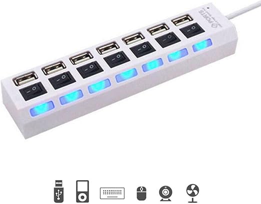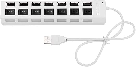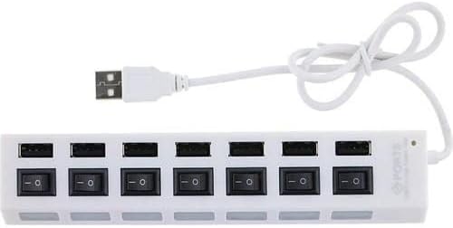 7 Portlu 2.0 USB Hub Çoklu USB Çoklayıcı Splitter Power Tuşlu Adaptör Beyaz