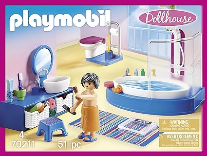 İçindekiler: 1 x Playmobil Oyuncak Bebek Evi Banyosu, 51 parçalı oyun figürü seti, talimatlar (Türkçe olmayabilir): 1 duş banyosu, 1 dolap, 1 tuvalet, 1 figür, 47 aksesuar Malzeme: plastik Ayrı ayrı kurulabilir UxDxY duş banyosu: 11 x 7 x 9,5 cm Ağırlık: 128 g, 70211