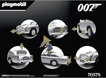 İçindekiler: 1 x Playmobil James Bond Aston Martin DB5 – Goldfinger Sürümü, 54 parçalı oyun figürü seti, talimatlar (Türkçe olmayabilir): 1 araba, 1 James Bond figürü, 3 film figürü, 49 aksesuar Malzeme: plastik U x G x Y araç: 26,5 x 10 x 8 cm Ölçeği (Aston Martin model araba): Yaklaşık 1:17 Ağırlık: 355 g, 70578