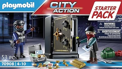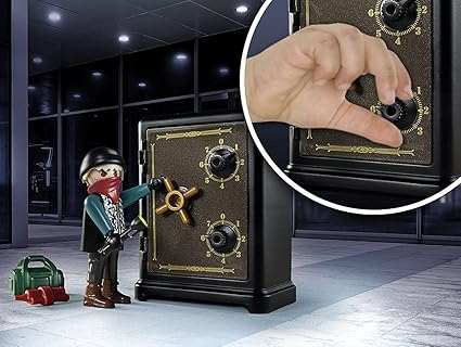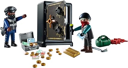 Playmobil polisi ile ilk adımlar: Playmobil Banka Soygunu Kasalı Başlangıç Paketi, 1 soyguncu, 1 Playmobil polis memuru ve aksesuarlar