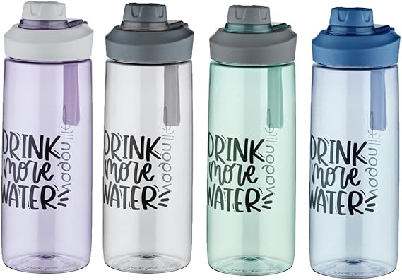 720 ml Çevir Aç Kapak Tritan Su Matarası -Silikon Taşıma Askısı-Süzgeçli-