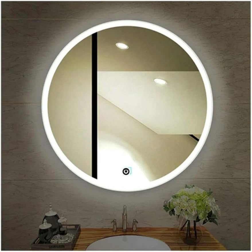 75x75cm Yuvarlak Şeritli Dekoratif Banyo Duvar Aynası Ledli Banyo Duvar Aynası BeyazLed EagleNM1241