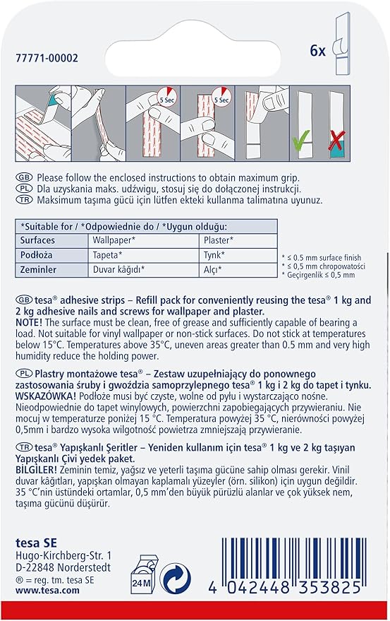 77771 – 00002 – 00 çıkarılabilir yapışkan bant üzerine resim asmak için duvar kağıdı, beyaz