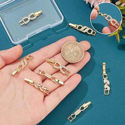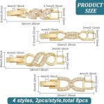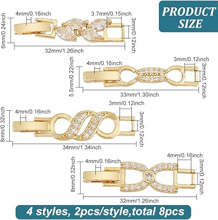 8 adet 4 stil 18 ayar altın kaplama katlanır toka, kolye bilezik genişleticiler kübik zirkonya uzatma klipsleri bilezik kolye takı yapımı için, 2 adet/stil