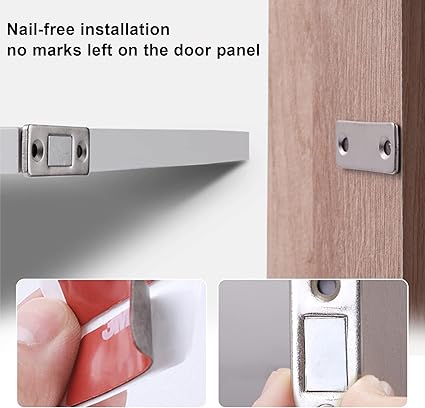 Ultra ince tasarım: Paslanmaz çelik mıknatıslı tutucu sadece 4 mm kalınlığındadır, böylece boşluk kapıyı doğru şekilde kapatır. Mutfak dolabı kapıları, dolaplar, dolap kapıları, çekmeceler vb. için uygundur. Balkonların, pencerelerin ve daha fazlasının sürgülü kapıları için de geçerlidir.