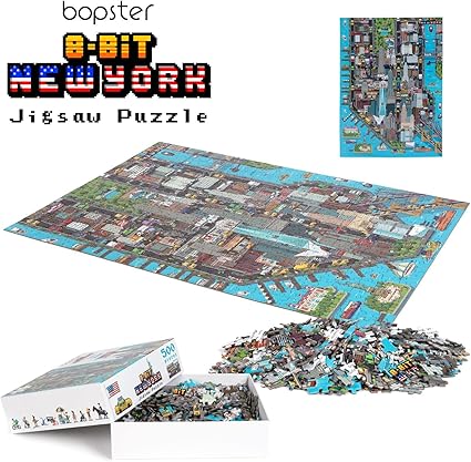 RETRO NEW YORK JIGSAW BULMACA – Yetişkinler ve çocuklar için bopster yapbozlar, şehirdeki ünlü ve tarihi simge yapıları tasvir eden 8 bit piksel retro tarzda resmedilmiştir.
