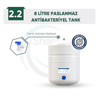 2.2G 8 Litre Paslanmaz Çelik Su Deposu – Su Arıtma Tankı + Ücretsiz Tank Vanası