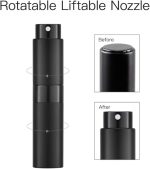 8 ml alüminyum parfüm spreyi, doldurulabilir, boş, seyahat parfüm spreyi, kadınlar ve erkekler için, seyahat sprey şişesi, seyahat için (siyah)
