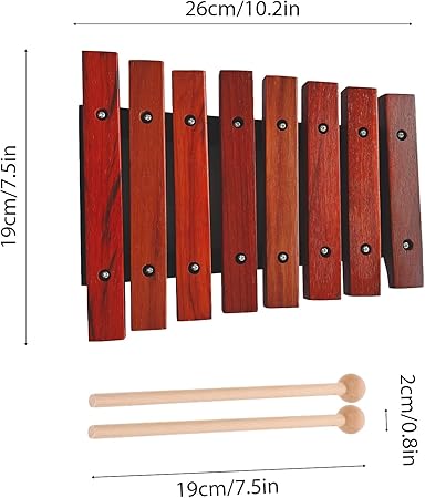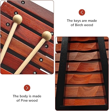 [İşçilik]: Bu 8 notalı ksilofon, dayanıklılığını ve uzun ömürlülüğünü gar eden güvenilir malzemelerle ince bir şekilde üretilmiştir. Ksilofon, müzik severler için sağlam ve güvenilir bir enstrüman sağlayan, tuşlar için huş ağacından ve gövde için çamdan yapılmıştır.