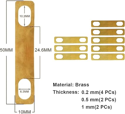 8 Parça Gitar Boyun Şimleri 4 x 0,2 mm, 2 x 0,5 mm ve 2 x 1 mm Kalınlık Pirinç Şim, Gitar ve Bas Cıvata Boyun Onarımı, Altın
