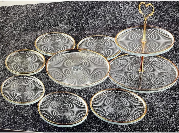 8 Parça Gold Yaldızlı Cam Servis Sunum Seti Takımı