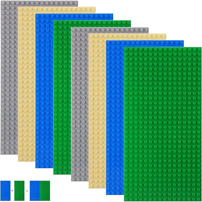 8 Plaka Seti Yapı Plakaları Çoğu Marka ile Uyumlu, Dikdörtgen Taban Plakaları 25,6 x 12,8 cm 16 x 32 Düğümlü Yaratıcı Oyun için (Kum, Gri, Yeşil, Mavi, 25,6 x 12,8 cm)