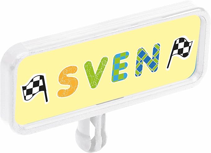 Set, Yeni ve Klasik serideki tüm BIG Bobby Car modellerinin ön veya arka römork bağlantısına takılabilen koruyucu kapaklı plastik bir tabela içerir